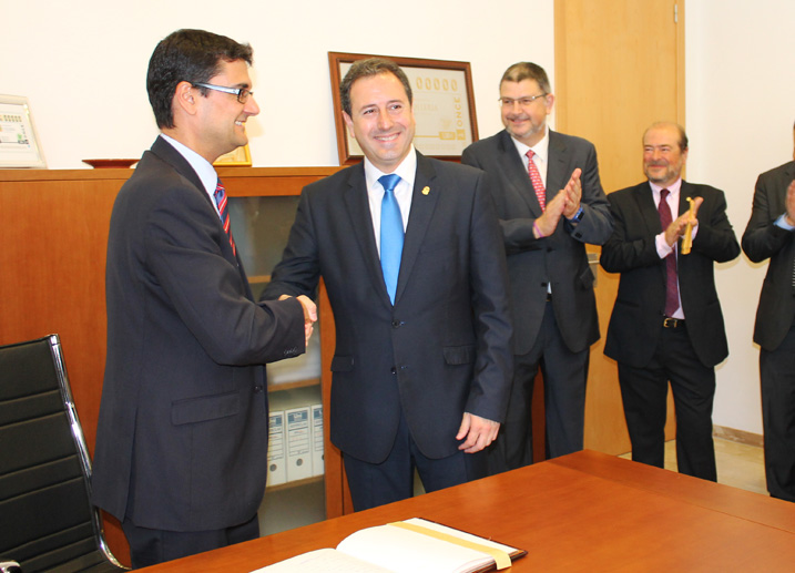 A continuación, la comitiva se desplazó hasta el “Casa Santonja -Palau dels Marau”, donde el Alcalde y el Rector procedieron a la firma del “Convenio Marco de Colaboración Institucional” que regula las actividades y describe los objetivos que unirán a partir de ahora a las dos Instituciones.
