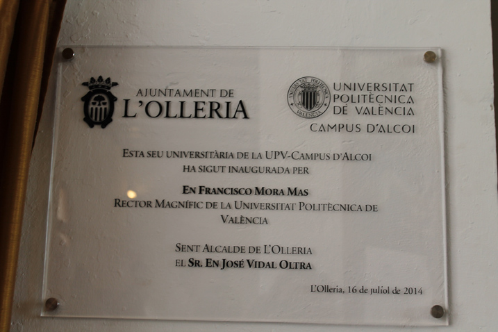 El miercoles 16 de Julio, a mediodía ha tenido lugar la Inauguración de la Sede Universitaria del Campus d’Alcoi de la Universitat Politècnica de València en L’Olleria. Al Acto, que ha estado presidido por Don José Vidal Oltra, Alcalde de la población, Don Francisco Mora Más, Rector Magnifico de la Universitat Politècnica de València, Doña Ángeles Pellicer Lloret, Subdirectora General de Universidades, Estudios Superiores y Ciencia y por la Directora del Campus d’Alcoi de la UPV, Doña Georgina Blanes Nadal y al que han asistido, junto a la Corporación Municipal, alcaldes en representación de la Mancomunitat de Municipis de la Vall d’Albaida y de la Mancomunitat de L’Alcoià i El Comtat, así como representes empresariales, de entidades financieras y de asociaciones sociales de la comarca, dio comienzo con la recepción de autoridades en el Consistorio Municipal y la correspondiente firma en el Libro de Honor por parte del Sr. Rector de la UPV, visitando a continuación las instalaciones municipales.