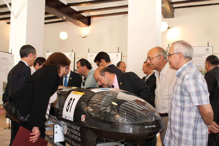 Más tarde descubrieron la placa conmemorativa que otorga al Campus d’Alcoi de la UPV, el privilegio de poder utilizar las instalaciones de esta Casa Santonja, como Sede Universitaria. Visitando a continuación la Exposición preparada al efecto y que resume la historia de la Escuela politécnica Superior de Alcoy, también han formado parte de esta exposición los grupos de trabajo de Informática, Robótica y el vehículo de bajo consumo IDF Eco-marathon, los grupos realizaron demostraciones para ilustrar a los asistentes sobre sus trabajos en el Campus d’Alcoi de la UPV.