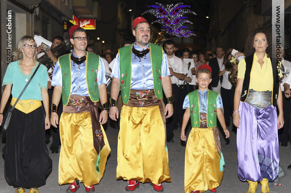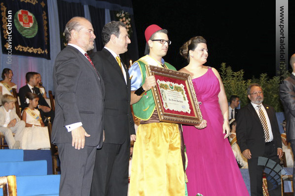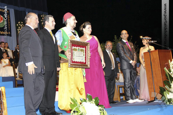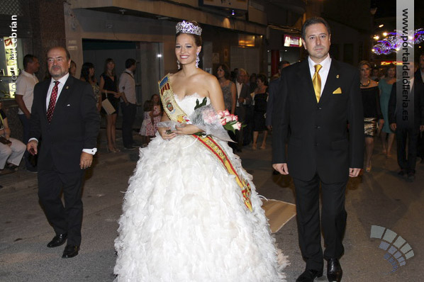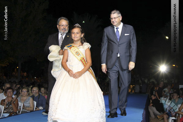 Por la pasarela desfiló la reina de 2013, Maria Mompó junto al alcalde, José Vidal y el concejal de Fiestas, Juan Ricardo Ruano y la reina infantil 2013 Aitana Terol, que subió al escenario junto al teniente de alcalde, Jesús Engo y el vicepresidente de la Junta Central, Vicente Egea, además del resto de festeros que conforman la corte de honor de infantil y mayor de este 2014  así como las dos reinas de 2014, la mayor Paula Martí Vidal que subió acompañada de la Presidenta de la Junta Central Maria Dolores Gil y de la mantenedora y pregonera de este año, Vanessa Vidal Cerdá, y Elsa Mompó Albiñana como reina infantil que subió al escenario acompañada por el concejal de Patrimonio, Javier Albero, y  el vicepresidente de la Junta Central, Juan M. Martí Boix. Junto a ellos, los otros grandes protagonistas de estas Fiestas 2014, los capitanes y embajadores de las dos filaes con cargo este año, la cristiana Mariners y la mora Llevantins. Por la filà cristiana, el embajador Victor González Alvarez y el capitán Juan Rafael Ferri Pastor, por la filà mora, el embajador Ricardo Sáez Cerdá y como capitán Vicente Oviedo Such.