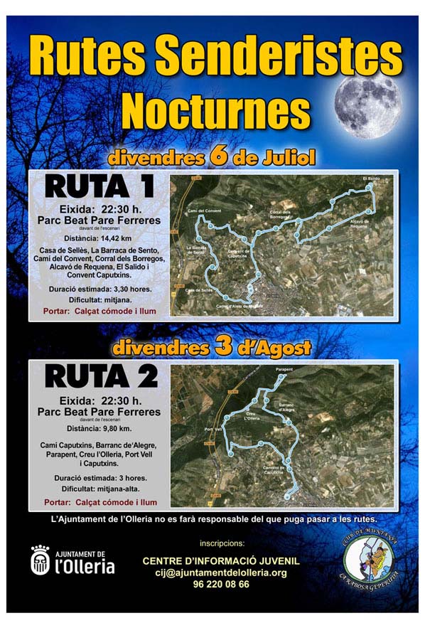 El viernes 6 de Julio se celebrá el primero de los dos circuitos de la «Ruta Senderista Nocturna», se recuerda una vez más a los participantes, que acudan con calzado cómodo (apropiado para andar largas distancias ) y una linterna.
