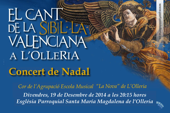 El próximo viernes el coro de la Agrupación Escuela Musical «La Nova» de L’Olleria, ofrecerá el Concierto de Navidad a partir de las 20:15 h en la Iglesia Parroquial Sta. Mª Magdalena